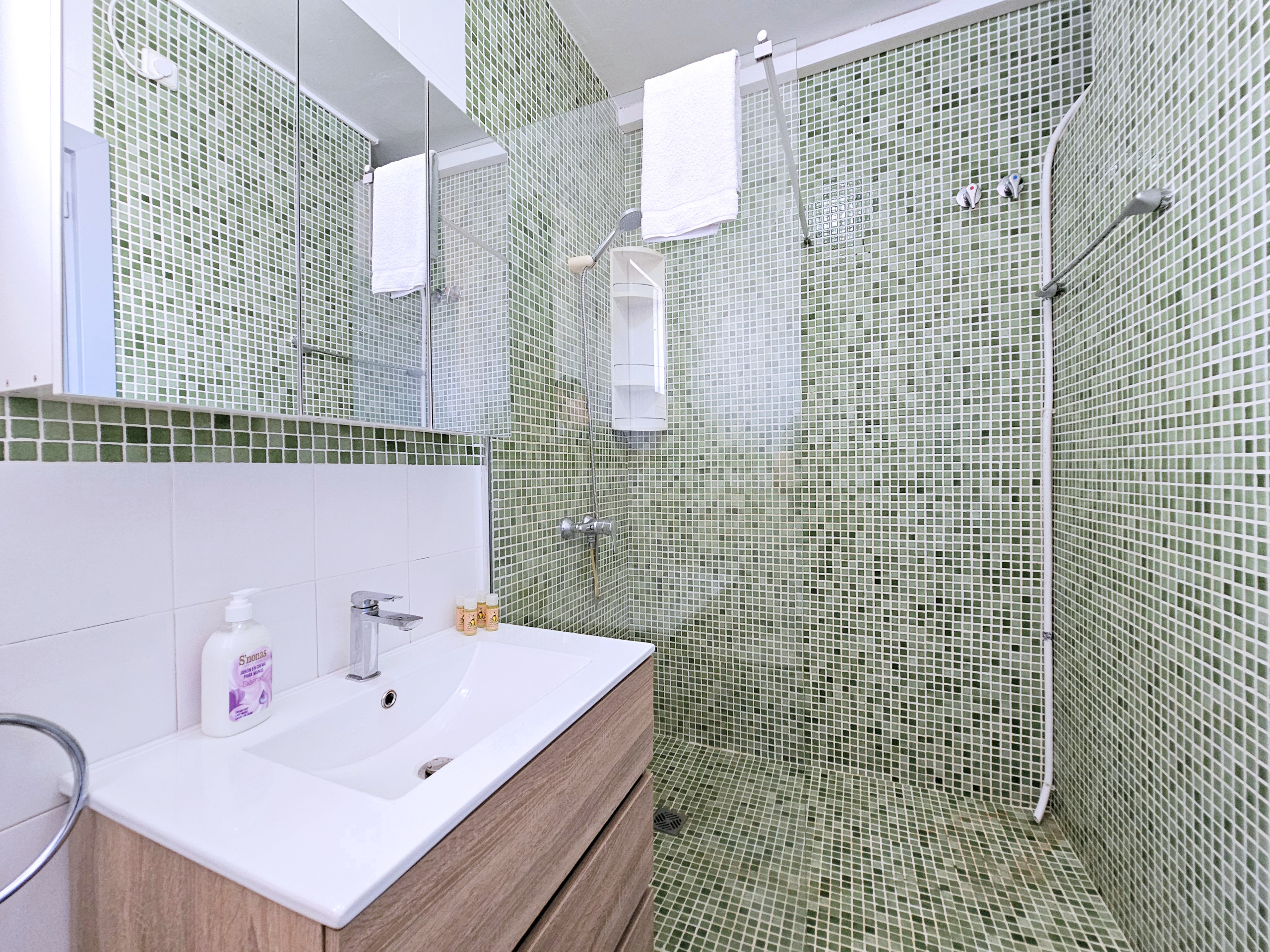 Báñate y relájate: Baño moderno con ducha e instantáneo agua caliente.